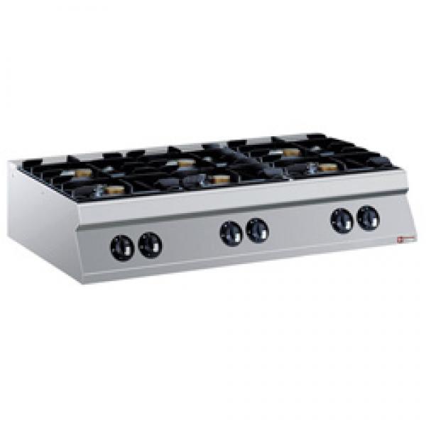 BTH 1200 x 900 x 250-320 mm kcal-h : 37840 kg : 110 6 Brenner (2x 10 kW und 4x 6 kW). Aus Edelstahl AISI 304, tiefgezogenes "Top" (20/10 mm) mit wasserdichtem Flüssigkeitssammelbecken, Nivellierzylindern, wasserdicht "IPX5". Sehr hocheffiziente Messingbrenner und Kronen, "Flower Flame"-Technologie, Gasventilsteuerung. Emaillierte Gusseisengitter (450x350 mm). Kraft und Präzision in der Steuerung, die es noch nie gegeben hat! Exklusives Patent, das es der Brennerflamme ermöglicht, sich automatisch an den Durchmesser der Töpfe (10 bis 40 cm) anzupassen. |