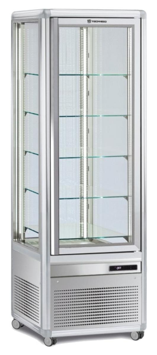 ) Hersteller/Großhändler KBS   BTH 595 x 645 x 1780 mm 4°C bis 10°C 230 V, 0,44 kW Kältemittel R 290 (Propan)GWP 3 Für die Präsentation von Kuchen 4-seitig 3-fach isolierverglast LED-Beleuchtung Separater Lichtschalter Digitale Temperaturanzeige Elektronische Temperaturregelung Automatische Abtauung und Tauwasserverdunstung Luftfeuchte 75 % Türanschlag rechts Werkseitig mit Türanschlag links lieferbar Robuster Türgriff 4 Rollen. |