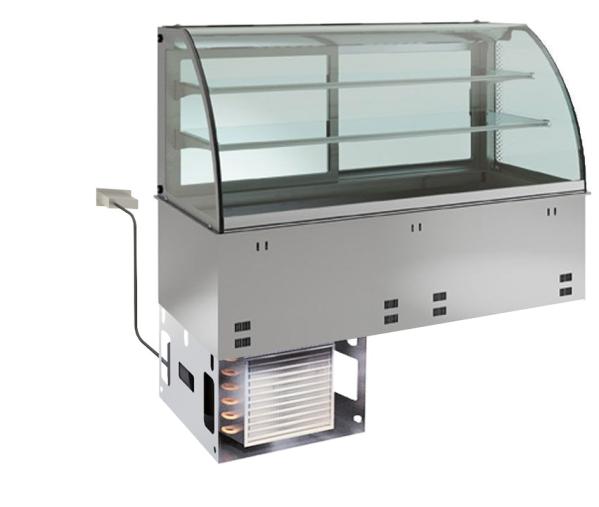 BTH 800 x 700 x 1190 mm außen BT 650 x 510 mm innen 2°C bis 7°C 230 V, 0,35 kW Kältemittel R 290 (Propan)GWP 3 Gebogener Glasaufbau 2 Glasablagen (je 8 mm stark) Beleuchtung separat schaltbar Isolierglas-Rückschiebescheiben 14 mm stark mit CNS-Rahmen Digitale Temperaturanzeige Elektronische Steuerung Bedienelement zum Einbau in Schrankkorpus abnehmbar und bis max. 20 cm vom Gerät platzierbar Einbauplatte innen aus Chromnickelstahl 1.4301 Hochklappbarer beschichteter Verdampfer für einfache Wannenreinigung Tauwasserablauf bauseitig erforderlich Umlaufender CNS Einhängerahmen Bestückung mit GN Behältern max. 30 mm Tiefe Optional, gegen Mehrpreis, automatischeTauwasserverdunstung möglich Bauseits ist auf eine ausreichende Belüftung des Aggregats zu achten. |