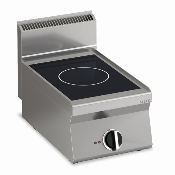 BTH 400 x 650 x 295 mm 400 V, 5,0 kW 1x 5,0 kW Rund Edelstahlkorpus 1 Kochfläche mit 5,0 kW Stufenlos regelbar Dicht versiegelte Glaskeramikoberfläche Punktinduktion mit zentraler Topferkennung. |
