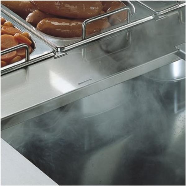 BTH 1422 x 750 x 1024 mm 30°C bis 90°C 230 V, 2,71 kW 4 GN bis 150 mm tief Serienzubehör 3x (322307) Trennsteg 534 x 22mm (BxT) 2x (322308) Trennsteg 325,2 x 22mm (BxT) Einbauwanne Bain Marie Wasserbad Steckerfertige Ausführung Separater An- Ausschalter Akustischer Alarmgeber bei Wassermangel Plexiglas-Hustenschutz, stufenlos absenkbar und separat schaltbar Hustenschutzablage aus CNS gefertigt Ablage nicht für Teller oder weiteres geeignet Plexiglas Hustenschutz mit eingebauten Wärmestrahler separat schaltbar Elektronische Steuerung Digitale Temperaturanzeige Einbauwanne Innen aus Chromnickelstahl 1.4301 - AISI 304 voll verschweißt Manuelle Befüllung mit Wasser Seitlicher Wasserablaufhahn, bauseitiger Wasserablauf erforderlich Umlaufender Einhängerahmen Trennstege im Lieferumfang enthalten Warenpräsentation nur unter Verwendung von GN Behältern möglich Bestückung für GN Behälter max. 150 mm Tiefe |