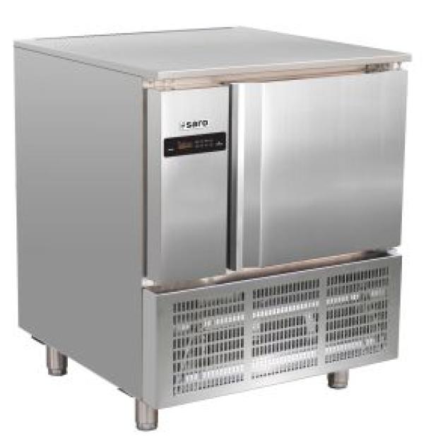 ) Hersteller/Großhändler Saro BTH 800 x 875 x 840 mm 230 V, 0,72 kW - Material: (Gehäuse und Innenraum) Edelstahl, (Boden außen) verzinkter Stahl - Tür selbstschließend - Geeignet für 5 x 1/1 GN, oder B 600 x T 400 mm Bleche - 4 voreingestellte Temperaturstufen - Kerntemperaturfühler - Manuelle Abtauung - Schnellkühlen: von +65 °C / +10 °C in 89 Minuten, höchste Ladekapazität pro Blech: 18 kg - Schockfrosten: von +65 °C / -18 °C in 149,5 Minuten, höchste Ladekapazität: 14 kg - Digitale Temperaturkontrolle (DIXELL) - Isolierung: 70 mm - Umluftkühlung - 4 Füße, H 50 - 70 mm - Inhalt (brutto/netto): 156 / 88 L - Innenmaße: B 440 x T 695 x H 370 mm - Gewicht (netto/brutto): 116 / 149 kg - Kältemittel: R290 |